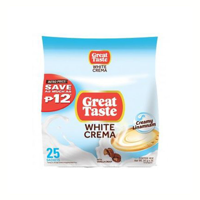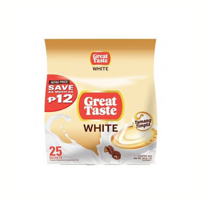 Great Taste 3-in-1 Polybag 30g 25 pcs (White Caramel, White Crema, White), GRE75Great Taste 3-in-1 Polybag 30g 25 pcs (White Caramel, White Crema, White)Manufacturer: Great Taste Availability: Out of stockSKU: GRE75Delivery date: 1-2 days Choose Flavor *Please selectWhite CaramelWhite CremaWhite ₱149.00 Qty: Add to cart Ship toSelect countryPhilippinesAustraliaCanadaChinaHong KongJapanMalaysiaSingaporeTaiwanUnited Arab EmiratesUnited KingdomUnited StatesUnited States of AmericaAfghanistanÅland IslandsAlbaniaAlgeriaAmerican SamoaAndorraAngolaAnguillaAntarcticaAntigua and BarbudaArgentinaArmeniaArubaAustraliaAustriaAzerbaijanBahamasBahrainBangladeshBarbadosBelarusBelgiumBelizeBeninBermudaBhutanBolivia (Plurinational State of)Bonaire, Sint Eustatius and SabaBosnia and HerzegovinaBotswanaBouvet IslandBrazilBritish Indian Ocean TerritoryBrunei DarussalamBulgariaBurkina FasoBurundiCabo VerdeCambodiaCameroonCanadaCayman IslandsCentral African RepublicChadChileChinaChristmas IslandCocos (Keeling) IslandsColombiaComorosCongoCongo (Democratic Republic of the)Cook IslandsCosta RicaCôte d'IvoireCroatiaCubaCuraçaoCyprusCzechiaDenmarkDjiboutiDominicaDominican RepublicEcuadorEgyptEl SalvadorEquatorial GuineaEritreaEstoniaEswatiniEthiopiaFalkland Islands (Malvinas)Faroe IslandsFijiFinlandFranceFrench GuianaFrench PolynesiaFrench Southern TerritoriesGabonGambiaGeorgiaGermanyGhanaGibraltarGreeceGreenlandGrenadaGuadeloupeGuamGuatemalaGuernseyGuineaGuinea-BissauGuyanaHaitiHeard Island and McDonald IslandsHoly SeeHondurasHong KongHungaryIcelandIndiaIndonesiaIran (Islamic Republic of)IraqIrelandIsle of ManIsraelItalyJamaicaJapanJerseyJordanKazakhstanKenyaKiribatiKorea (Democratic People's Republic of)Korea (Republic of)KuwaitKyrgyzstanLao People's Democratic RepublicLatviaLebanonLesothoLiberiaLibyaLiechtensteinLithuaniaLuxembourgMacaoMadagascarMalawiMalaysiaMaldivesMaliMaltaMarshall IslandsMartiniqueMauritaniaMauritiusMayotteMexicoMicronesia (Federated States of)Moldova (Republic of)MonacoMongoliaMontenegroMontserratMoroccoMozambiqueMyanmarNamibiaNauruNepalNetherlandsNew CaledoniaNew ZealandNicaraguaNigerNigeriaNiueNorfolk IslandNorth MacedoniaNorthern Mariana IslandsNorwayOmanPakistanPalauPalestine, State ofPanamaPapua New GuineaParaguayPeruPhilippinesPitcairnPolandPortugalPuerto RicoQatarRéunionRomaniaRussian FederationRwandaSaint BarthélemySaint Helena, Ascension and Tristan da CunhaSaint Kitts and NevisSaint LuciaSaint Martin (French part)Saint Pierre and MiquelonSaint Vincent and the GrenadinesSamoaSan MarinoSao Tome and PrincipeSaudi ArabiaSenegalSerbiaSeychellesSierra LeoneSingaporeSint Maarten (Dutch part)SlovakiaSloveniaSolomon IslandsSomaliaSouth AfricaSouth Georgia and the South Sandwich IslandsSouth SudanSpainSri LankaSudanSurinameSvalbard and Jan MayenSwedenSwitzerlandSyrian Arab RepublicTaiwan, Province of ChinaTajikistanTanzania, United Republic ofThailandTimor-LesteTogoTokelauTongaTrinidad and TobagoTunisiaTurkeyTurkmenistanTurks and Caicos IslandsTuvaluUgandaUkraineUnited Arab EmiratesUnited Kingdom of Great Britain and Northern IrelandUnited States Minor Outlying IslandsUruguayUzbekistanVanuatuVenezuela (Bolivarian Republic of)VietnamVirgin Islands (British)Virgin Islands (U.S.)Wallis and FutunaWestern SaharaYemenZambiaZimbabwe *Other *Shipping MethodNameEstimated DeliveryPriceNo shipping optionsApply Custom wishlist OKAdd to wishlistAdd to compare listEmail a friendSPECIFICATIONSA smooth and creamy blend of coffee and sweet cream. Make your day great with Great Taste White! Brand: Great Taste