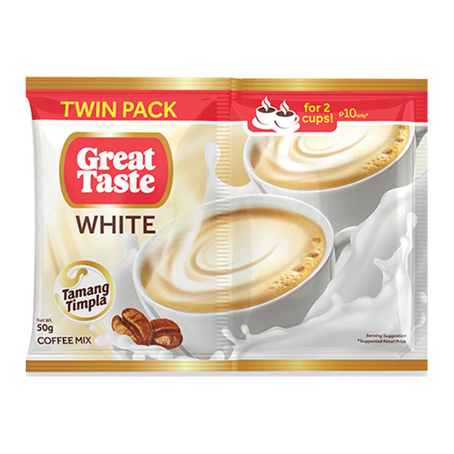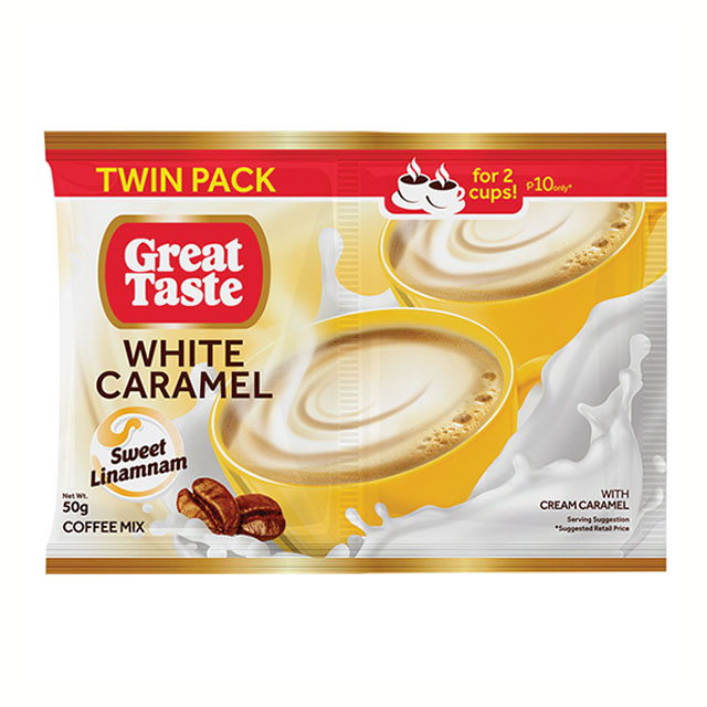 Great Taste 3-in-1 Twin Pack 50g 10 pcs (Brown Barako, White Caramel, White Chocolate, White Crema, White), GRE65Great Taste 3-in-1 Twin Pack 50g 10 pcs (Brown Barako, White Caramel, White Chocolate, White Crema, White)Manufacturer: Great Taste Availability: Out of stockSKU: GRE65Delivery date: 1-2 days Choose Flavor *Please selectBrown BarakoWhite CaramelWhite ChocolateWhite CremaWhite ₱96.00 Qty: Add to cart Ship toSelect countryPhilippinesAustraliaCanadaChinaHong KongJapanMalaysiaSingaporeTaiwanUnited Arab EmiratesUnited KingdomUnited StatesUnited States of AmericaAfghanistanÅland IslandsAlbaniaAlgeriaAmerican SamoaAndorraAngolaAnguillaAntarcticaAntigua and BarbudaArgentinaArmeniaArubaAustraliaAustriaAzerbaijanBahamasBahrainBangladeshBarbadosBelarusBelgiumBelizeBeninBermudaBhutanBolivia (Plurinational State of)Bonaire, Sint Eustatius and SabaBosnia and HerzegovinaBotswanaBouvet IslandBrazilBritish Indian Ocean TerritoryBrunei DarussalamBulgariaBurkina FasoBurundiCabo VerdeCambodiaCameroonCanadaCayman IslandsCentral African RepublicChadChileChinaChristmas IslandCocos (Keeling) IslandsColombiaComorosCongoCongo (Democratic Republic of the)Cook IslandsCosta RicaCôte d'IvoireCroatiaCubaCuraçaoCyprusCzechiaDenmarkDjiboutiDominicaDominican RepublicEcuadorEgyptEl SalvadorEquatorial GuineaEritreaEstoniaEswatiniEthiopiaFalkland Islands (Malvinas)Faroe IslandsFijiFinlandFranceFrench GuianaFrench PolynesiaFrench Southern TerritoriesGabonGambiaGeorgiaGermanyGhanaGibraltarGreeceGreenlandGrenadaGuadeloupeGuamGuatemalaGuernseyGuineaGuinea-BissauGuyanaHaitiHeard Island and McDonald IslandsHoly SeeHondurasHong KongHungaryIcelandIndiaIndonesiaIran (Islamic Republic of)IraqIrelandIsle of ManIsraelItalyJamaicaJapanJerseyJordanKazakhstanKenyaKiribatiKorea (Democratic People's Republic of)Korea (Republic of)KuwaitKyrgyzstanLao People's Democratic RepublicLatviaLebanonLesothoLiberiaLibyaLiechtensteinLithuaniaLuxembourgMacaoMadagascarMalawiMalaysiaMaldivesMaliMaltaMarshall IslandsMartiniqueMauritaniaMauritiusMayotteMexicoMicronesia (Federated States of)Moldova (Republic of)MonacoMongoliaMontenegroMontserratMoroccoMozambiqueMyanmarNamibiaNauruNepalNetherlandsNew CaledoniaNew ZealandNicaraguaNigerNigeriaNiueNorfolk IslandNorth MacedoniaNorthern Mariana IslandsNorwayOmanPakistanPalauPalestine, State ofPanamaPapua New GuineaParaguayPeruPhilippinesPitcairnPolandPortugalPuerto RicoQatarRéunionRomaniaRussian FederationRwandaSaint BarthélemySaint Helena, Ascension and Tristan da CunhaSaint Kitts and NevisSaint LuciaSaint Martin (French part)Saint Pierre and MiquelonSaint Vincent and the GrenadinesSamoaSan MarinoSao Tome and PrincipeSaudi ArabiaSenegalSerbiaSeychellesSierra LeoneSingaporeSint Maarten (Dutch part)SlovakiaSloveniaSolomon IslandsSomaliaSouth AfricaSouth Georgia and the South Sandwich IslandsSouth SudanSpainSri LankaSudanSurinameSvalbard and Jan MayenSwedenSwitzerlandSyrian Arab RepublicTaiwan, Province of ChinaTajikistanTanzania, United Republic ofThailandTimor-LesteTogoTokelauTongaTrinidad and TobagoTunisiaTurkeyTurkmenistanTurks and Caicos IslandsTuvaluUgandaUkraineUnited Arab EmiratesUnited Kingdom of Great Britain and Northern IrelandUnited States Minor Outlying IslandsUruguayUzbekistanVanuatuVenezuela (Bolivarian Republic of)VietnamVirgin Islands (British)Virgin Islands (U.S.)Wallis and FutunaWestern SaharaYemenZambiaZimbabwe *Other *Shipping MethodNameEstimated DeliveryPriceNo shipping optionsApply Custom wishlist OKAdd to wishlistAdd to compare listEmail a friendSPECIFICATIONSA long-standing local coffee brand with a rich history of firsts – first white coffee mix, first twin pack format, first resealable stand-up pouch, and first agglomerated coffee among others. Brand: Great Taste
