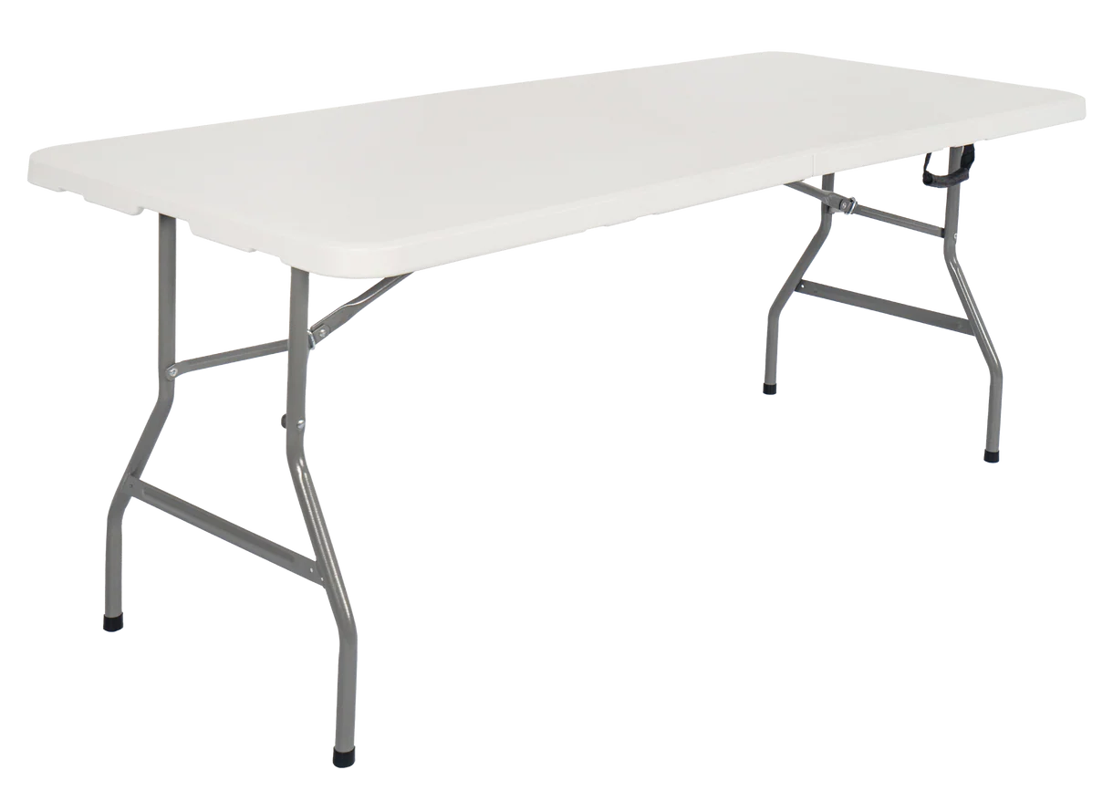 Homer 6ft Folding Table is ideal for outdoor and indoor use. It is a heavy duty trestle table that cannot easily fade or cracked even used outside. It can fold into half for easy storage. Perfect for parties, picnics, barbecues, weddings or caterers