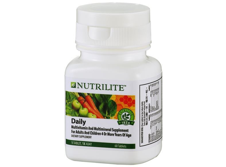 Nutrilite Daily TabletNUTRILITE Daily contains essential vitamins and minerals at basic levels to give you the confidence that you are taking good care of yourself. Taken just once a day, this product provides a broad nutritional coverage and balance of essential vitamins and minerals, together with valuable phytonutrients. Daily is specially-formulated to provide a supplementary source of those vitamins and minerals that help to meet daily nutritional requirements and that may be missing from your regular diet. This product also contains nutrients beyond just vitamins and minerals from the premium NUTRILITE plant-derived concentrates.Manufacturer: Nutrilite SKU: AA0119Delivery date: 3-5 days ₱1,435.00 Qty: Add to cart Ship toSelect countryPhilippinesAustraliaCanadaChinaHong KongJapanMalaysiaSingaporeTaiwanUnited Arab EmiratesUnited KingdomUnited StatesUnited States of AmericaAfghanistanÅland IslandsAlbaniaAlgeriaAmerican SamoaAndorraAngolaAnguillaAntarcticaAntigua and BarbudaArgentinaArmeniaArubaAustraliaAustriaAzerbaijanBahamasBahrainBangladeshBarbadosBelarusBelgiumBelizeBeninBermudaBhutanBolivia (Plurinational State of)Bonaire, Sint Eustatius and SabaBosnia and HerzegovinaBotswanaBouvet IslandBrazilBritish Indian Ocean TerritoryBrunei DarussalamBulgariaBurkina FasoBurundiCabo VerdeCambodiaCameroonCanadaCayman IslandsCentral African RepublicChadChileChinaChristmas IslandCocos (Keeling) IslandsColombiaComorosCongoCongo (Democratic Republic of the)Cook IslandsCosta RicaCôte d'IvoireCroatiaCubaCuraçaoCyprusCzechiaDenmarkDjiboutiDominicaDominican RepublicEcuadorEgyptEl SalvadorEquatorial GuineaEritreaEstoniaEswatiniEthiopiaFalkland Islands (Malvinas)Faroe IslandsFijiFinlandFranceFrench GuianaFrench PolynesiaFrench Southern TerritoriesGabonGambiaGeorgiaGermanyGhanaGibraltarGreeceGreenlandGrenadaGuadeloupeGuamGuatemalaGuernseyGuineaGuinea-BissauGuyanaHaitiHeard Island and McDonald IslandsHoly SeeHondurasHong KongHungaryIcelandIndiaIndonesiaIran (Islamic Republic of)IraqIrelandIsle of ManIsraelItalyJamaicaJapanJerseyJordanKazakhstanKenyaKiribatiKorea (Democratic People's Republic of)Korea (Republic of)KuwaitKyrgyzstanLao People's Democratic RepublicLatviaLebanonLesothoLiberiaLibyaLiechtensteinLithuaniaLuxembourgMacaoMadagascarMalawiMalaysiaMaldivesMaliMaltaMarshall IslandsMartiniqueMauritaniaMauritiusMayotteMexicoMicronesia (Federated States of)Moldova (Republic of)MonacoMongoliaMontenegroMontserratMoroccoMozambiqueMyanmarNamibiaNauruNepalNetherlandsNew CaledoniaNew ZealandNicaraguaNigerNigeriaNiueNorfolk IslandNorth MacedoniaNorthern Mariana IslandsNorwayOmanPakistanPalauPalestine, State ofPanamaPapua New GuineaParaguayPeruPhilippinesPitcairnPolandPortugalPuerto RicoQatarRéunionRomaniaRussian FederationRwandaSaint BarthélemySaint Helena, Ascension and Tristan da CunhaSaint Kitts and NevisSaint LuciaSaint Martin (French part)Saint Pierre and MiquelonSaint Vincent and the GrenadinesSamoaSan MarinoSao Tome and PrincipeSaudi ArabiaSenegalSerbiaSeychellesSierra LeoneSingaporeSint Maarten (Dutch part)SlovakiaSloveniaSolomon IslandsSomaliaSouth AfricaSouth Georgia and the South Sandwich IslandsSouth SudanSpainSri LankaSudanSurinameSvalbard and Jan MayenSwedenSwitzerlandSyrian Arab RepublicTaiwan, Province of ChinaTajikistanTanzania, United Republic ofThailandTimor-LesteTogoTokelauTongaTrinidad and TobagoTunisiaTurkeyTurkmenistanTurks and Caicos IslandsTuvaluUgandaUkraineUnited Arab EmiratesUnited Kingdom of Great Britain and Northern IrelandUnited States Minor Outlying IslandsUruguayUzbekistanVanuatuVenezuela (Bolivarian Republic of)VietnamVirgin Islands (British)Virgin Islands (U.S.)Wallis and FutunaWestern SaharaYemenZambiaZimbabwe *Other *Shipping MethodNameEstimated DeliveryPriceNo shipping optionsApply Custom wishlist OKAdd to wishlistAdd to compare listEmail a friendOVERVIEWNUTRILITE Daily contains essential vitamins and minerals at basic levels to give you the confidence that you are taking good care of yourself.Taken just once a day, this product provides a broad nutritional coverage and balance of essential vitamins and minerals, together with valuable phytonutrients. Daily is specially-formulated to provide a supplementary source of those vitamins and minerals that help to meet daily nutritional requirements and that may be missing from your regular diet.This product also contains nutrients beyond just vitamins and minerals from the premium NUTRILITE plant-derived concentrates.FEATURESProvides a once-a-day, convenient solution to the nutrient gap that may result from a modern lifestyle which can lead to poor food choices.Provides broad nutritional coverage and a balance of essential vitamins and minerals.Contains phytonutrients found in the plant concentrates.Vitamin C, B12, B6, folate, copper, iron, zinc support a normal function of the immune system.Vitamin C, E, B2, zinc and manganese contribute to the protection of cells from oxidative stress.Vitamin B2 and iodine play a role in the maintenance of normal skin.No artificial colours, flavours or preservatives added.INGREDIENTSAVERAGE CONTENTPER DAY (1 TABLET)% NRV*Vitamin A748 μg RE94Vitamin D2.5 μg50Vitamin E8 mg α-TE67Vitamin B12.6 mg236Vitamin B23.2 mg229Niacin20 mg NE125Pantothenic acid8 mg133Vitamin B63.2 mg229Folic acid40 μg20Vitamin B125 μg200Vitamin C80 mg100Calcium200 mg25Magnesium100 mg27Iron14 mg100Copper1 mg100Iodine120 μg80Zinc14 mg140Manganese1 mg50Phosphorus125 mg18*% of Nutrient Reference Value