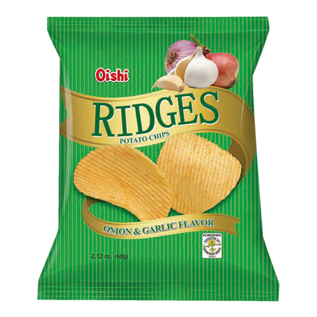Oishi Ridges 60g (Cheese, BBQ, Onion & Garlic), OIS118Oishi Ridges 60g (Cheese, BBQ, Onion & Garlic)Manufacturer: Oishi Availability: In stockSKU: OIS118Delivery date: 1-2 days Choose Flavor *Please selectCheeseBBQOnion & Garlic ₱28.00 Qty: Add to cart Ship toSelect countryPhilippinesAustraliaCanadaChinaHong KongJapanMalaysiaSingaporeTaiwanUnited Arab EmiratesUnited KingdomUnited StatesUnited States of AmericaAfghanistanÅland IslandsAlbaniaAlgeriaAmerican SamoaAndorraAngolaAnguillaAntarcticaAntigua and BarbudaArgentinaArmeniaArubaAustraliaAustriaAzerbaijanBahamasBahrainBangladeshBarbadosBelarusBelgiumBelizeBeninBermudaBhutanBolivia (Plurinational State of)Bonaire, Sint Eustatius and SabaBosnia and HerzegovinaBotswanaBouvet IslandBrazilBritish Indian Ocean TerritoryBrunei DarussalamBulgariaBurkina FasoBurundiCabo VerdeCambodiaCameroonCanadaCayman IslandsCentral African RepublicChadChileChinaChristmas IslandCocos (Keeling) IslandsColombiaComorosCongoCongo (Democratic Republic of the)Cook IslandsCosta RicaCôte d'IvoireCroatiaCubaCuraçaoCyprusCzechiaDenmarkDjiboutiDominicaDominican RepublicEcuadorEgyptEl SalvadorEquatorial GuineaEritreaEstoniaEswatiniEthiopiaFalkland Islands (Malvinas)Faroe IslandsFijiFinlandFranceFrench GuianaFrench PolynesiaFrench Southern TerritoriesGabonGambiaGeorgiaGermanyGhanaGibraltarGreeceGreenlandGrenadaGuadeloupeGuamGuatemalaGuernseyGuineaGuinea-BissauGuyanaHaitiHeard Island and McDonald IslandsHoly SeeHondurasHong KongHungaryIcelandIndiaIndonesiaIran (Islamic Republic of)IraqIrelandIsle of ManIsraelItalyJamaicaJapanJerseyJordanKazakhstanKenyaKiribatiKorea (Democratic People's Republic of)Korea (Republic of)KuwaitKyrgyzstanLao People's Democratic RepublicLatviaLebanonLesothoLiberiaLibyaLiechtensteinLithuaniaLuxembourgMacaoMadagascarMalawiMalaysiaMaldivesMaliMaltaMarshall IslandsMartiniqueMauritaniaMauritiusMayotteMexicoMicronesia (Federated States of)Moldova (Republic of)MonacoMongoliaMontenegroMontserratMoroccoMozambiqueMyanmarNamibiaNauruNepalNetherlandsNew CaledoniaNew ZealandNicaraguaNigerNigeriaNiueNorfolk IslandNorth MacedoniaNorthern Mariana IslandsNorwayOmanPakistanPalauPalestine, State ofPanamaPapua New GuineaParaguayPeruPhilippinesPitcairnPolandPortugalPuerto RicoQatarRéunionRomaniaRussian FederationRwandaSaint BarthélemySaint Helena, Ascension and Tristan da CunhaSaint Kitts and NevisSaint LuciaSaint Martin (French part)Saint Pierre and MiquelonSaint Vincent and the GrenadinesSamoaSan MarinoSao Tome and PrincipeSaudi ArabiaSenegalSerbiaSeychellesSierra LeoneSingaporeSint Maarten (Dutch part)SlovakiaSloveniaSolomon IslandsSomaliaSouth AfricaSouth Georgia and the South Sandwich IslandsSouth SudanSpainSri LankaSudanSurinameSvalbard and Jan MayenSwedenSwitzerlandSyrian Arab RepublicTaiwan, Province of ChinaTajikistanTanzania, United Republic ofThailandTimor-LesteTogoTokelauTongaTrinidad and TobagoTunisiaTurkeyTurkmenistanTurks and Caicos IslandsTuvaluUgandaUkraineUnited Arab EmiratesUnited Kingdom of Great Britain and Northern IrelandUnited States Minor Outlying IslandsUruguayUzbekistanVanuatuVenezuela (Bolivarian Republic of)VietnamVirgin Islands (British)Virgin Islands (U.S.)Wallis and FutunaWestern SaharaYemenZambiaZimbabwe *Other *Shipping MethodNameEstimated DeliveryPriceNo shipping optionsApply Custom wishlist OKAdd to wishlistAdd to compare listEmail a friendSPECIFICATIONSOishi's potato chips made more exciting with a ridged texture that's able to pack more cheese flavor into every bite.Brand: Oishi