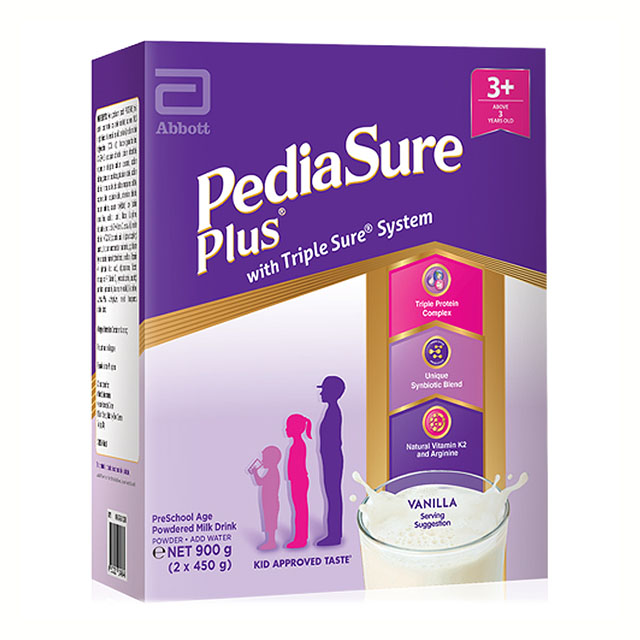 Pediasure Plus Milk Vanilla (400g, 900g, 1.8 kg), PED13Pediasure Plus Milk Vanilla (400g, 900g, 1.8 kg)Manufacturer: Abbott Availability: In stockSKU: PED13Delivery date: 1-2 days Choose Gram *For Product with grams like Gold, Jewelr, Food Items, Medicine Items.Please select400g900g [+₱694.00]1.8 kg [+₱1,669.00] ₱560.00 Qty: Add to cart Ship toSelect countryPhilippinesAustraliaCanadaChinaHong KongJapanMalaysiaSingaporeTaiwanUnited Arab EmiratesUnited KingdomUnited StatesUnited States of AmericaAfghanistanÅland IslandsAlbaniaAlgeriaAmerican SamoaAndorraAngolaAnguillaAntarcticaAntigua and BarbudaArgentinaArmeniaArubaAustraliaAustriaAzerbaijanBahamasBahrainBangladeshBarbadosBelarusBelgiumBelizeBeninBermudaBhutanBolivia (Plurinational State of)Bonaire, Sint Eustatius and SabaBosnia and HerzegovinaBotswanaBouvet IslandBrazilBritish Indian Ocean TerritoryBrunei DarussalamBulgariaBurkina FasoBurundiCabo VerdeCambodiaCameroonCanadaCayman IslandsCentral African RepublicChadChileChinaChristmas IslandCocos (Keeling) IslandsColombiaComorosCongoCongo (Democratic Republic of the)Cook IslandsCosta RicaCôte d'IvoireCroatiaCubaCuraçaoCyprusCzechiaDenmarkDjiboutiDominicaDominican RepublicEcuadorEgyptEl SalvadorEquatorial GuineaEritreaEstoniaEswatiniEthiopiaFalkland Islands (Malvinas)Faroe IslandsFijiFinlandFranceFrench GuianaFrench PolynesiaFrench Southern TerritoriesGabonGambiaGeorgiaGermanyGhanaGibraltarGreeceGreenlandGrenadaGuadeloupeGuamGuatemalaGuernseyGuineaGuinea-BissauGuyanaHaitiHeard Island and McDonald IslandsHoly SeeHondurasHong KongHungaryIcelandIndiaIndonesiaIran (Islamic Republic of)IraqIrelandIsle of ManIsraelItalyJamaicaJapanJerseyJordanKazakhstanKenyaKiribatiKorea (Democratic People's Republic of)Korea (Republic of)KuwaitKyrgyzstanLao People's Democratic RepublicLatviaLebanonLesothoLiberiaLibyaLiechtensteinLithuaniaLuxembourgMacaoMadagascarMalawiMalaysiaMaldivesMaliMaltaMarshall IslandsMartiniqueMauritaniaMauritiusMayotteMexicoMicronesia (Federated States of)Moldova (Republic of)MonacoMongoliaMontenegroMontserratMoroccoMozambiqueMyanmarNamibiaNauruNepalNetherlandsNew CaledoniaNew ZealandNicaraguaNigerNigeriaNiueNorfolk IslandNorth MacedoniaNorthern Mariana IslandsNorwayOmanPakistanPalauPalestine, State ofPanamaPapua New GuineaParaguayPeruPhilippinesPitcairnPolandPortugalPuerto RicoQatarRéunionRomaniaRussian FederationRwandaSaint BarthélemySaint Helena, Ascension and Tristan da CunhaSaint Kitts and NevisSaint LuciaSaint Martin (French part)Saint Pierre and MiquelonSaint Vincent and the GrenadinesSamoaSan MarinoSao Tome and PrincipeSaudi ArabiaSenegalSerbiaSeychellesSierra LeoneSingaporeSint Maarten (Dutch part)SlovakiaSloveniaSolomon IslandsSomaliaSouth AfricaSouth Georgia and the South Sandwich IslandsSouth SudanSpainSri LankaSudanSurinameSvalbard and Jan MayenSwedenSwitzerlandSyrian Arab RepublicTaiwan, Province of ChinaTajikistanTanzania, United Republic ofThailandTimor-LesteTogoTokelauTongaTrinidad and TobagoTunisiaTurkeyTurkmenistanTurks and Caicos IslandsTuvaluUgandaUkraineUnited Arab EmiratesUnited Kingdom of Great Britain and Northern IrelandUnited States Minor Outlying IslandsUruguayUzbekistanVanuatuVenezuela (Bolivarian Republic of)VietnamVirgin Islands (British)Virgin Islands (U.S.)Wallis and FutunaWestern SaharaYemenZambiaZimbabwe *Other *Shipping MethodNameEstimated DeliveryPriceNo shipping optionsApply Custom wishlist OKAdd to wishlistAdd to compare listEmail a friendSPECIFICATIONSNumber 1 Child Nutrition Supplement in the PhilippinesNutritional supplement powder drink clinically proven to provide a hard-to-feed child optimal nutrition for healthy growth, development and immunity.A glass of PediaSure Plus provides COMPLETE, BALANCED nutrition. It contains macronutrients and micronutrients needed for a child to stay healthy and well-nourished. PediaSure Plus helps provide 100% of daily Recommended Energy and Nutrient Intakes (RENI).7PediaSure Plus has 2-in-1 synbiotic blend of probiotics and prebiotics FOS clinically proven to reduce Upper Respiratory Infections (URIs) by 45% and is associated with fewer sick days.The only complete, balanced nutrition with Triple Protein Complex , Dual Carbohydrate Blend, and Unique Fat Blend and MCTs (medium chain triglycerides)Can be used as a nutritional supplement with or between mealsGluten and Lactose-FreeFor preschool age (above 3 years old)PREPARE IT RIGHT: 5 scoops with 190mL of room temperature or warm water. Stir until powder is dissolved.Milk formula for Infant & Child NutritionBrand: AbbottOverviewReviewsContact UsSPECIFICATIONSNumber 1 Child Nutrition Supplement in the PhilippinesNutritional supplement powder drink clinically proven to provide a hard-to-feed child optimal nutrition for healthy growth, development and immunity.A glass of PediaSure Plus provides COMPLETE, BALANCED nutrition. It contains macronutrients and micronutrients needed for a child to stay healthy and well-nourished. PediaSure Plus helps provide 100% of daily Recommended Energy and Nutrient Intakes (RENI).7PediaSure Plus has 2-in-1 synbiotic blend of probiotics and prebiotics FOS clinically proven to reduce Upper Respiratory Infections (URIs) by 45% and is associated with fewer sick days.The only complete, balanced nutrition with Triple Protein Complex , Dual Carbohydrate Blend, and Unique Fat Blend and MCTs (medium chain triglycerides)Can be used as a nutritional supplement with or between mealsGluten and Lactose-FreeFor preschool age (above 3 years old)PREPARE IT RIGHT: 5 scoops with 190mL of room temperature or warm water. Stir until powder is dissolved.Milk formula for Infant & Child NutritionBrand: Abbott