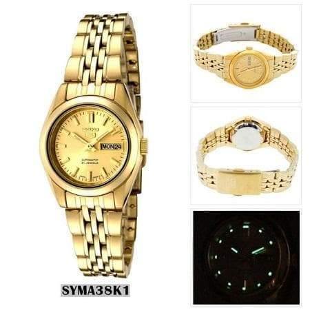 Seiko 5 Automatic 21 Jewels Women's Watch, SYMA38K1Seiko 5 Automatic 21 Jewels Women's WatchSKU: SYMA38K1Vendor: Xiao Mu Mu & Co.Delivery date: 3-5 days ₱5,999.00 Qty: Add to cart Ship toSelect countryPhilippinesAustraliaCanadaChinaHong KongJapanMalaysiaSingaporeTaiwanUnited Arab EmiratesUnited KingdomUnited StatesUnited States of AmericaAfghanistanÅland IslandsAlbaniaAlgeriaAmerican SamoaAndorraAngolaAnguillaAntarcticaAntigua and BarbudaArgentinaArmeniaArubaAustraliaAustriaAzerbaijanBahamasBahrainBangladeshBarbadosBelarusBelgiumBelizeBeninBermudaBhutanBolivia (Plurinational State of)Bonaire, Sint Eustatius and SabaBosnia and HerzegovinaBotswanaBouvet IslandBrazilBritish Indian Ocean TerritoryBrunei DarussalamBulgariaBurkina FasoBurundiCabo VerdeCambodiaCameroonCanadaCayman IslandsCentral African RepublicChadChileChinaChristmas IslandCocos (Keeling) IslandsColombiaComorosCongoCongo (Democratic Republic of the)Cook IslandsCosta RicaCôte d'IvoireCroatiaCubaCuraçaoCyprusCzechiaDenmarkDjiboutiDominicaDominican RepublicEcuadorEgyptEl SalvadorEquatorial GuineaEritreaEstoniaEswatiniEthiopiaFalkland Islands (Malvinas)Faroe IslandsFijiFinlandFranceFrench GuianaFrench PolynesiaFrench Southern TerritoriesGabonGambiaGeorgiaGermanyGhanaGibraltarGreeceGreenlandGrenadaGuadeloupeGuamGuatemalaGuernseyGuineaGuinea-BissauGuyanaHaitiHeard Island and McDonald IslandsHoly SeeHondurasHong KongHungaryIcelandIndiaIndonesiaIran (Islamic Republic of)IraqIrelandIsle of ManIsraelItalyJamaicaJapanJerseyJordanKazakhstanKenyaKiribatiKorea (Democratic People's Republic of)Korea (Republic of)KuwaitKyrgyzstanLao People's Democratic RepublicLatviaLebanonLesothoLiberiaLibyaLiechtensteinLithuaniaLuxembourgMacaoMadagascarMalawiMalaysiaMaldivesMaliMaltaMarshall IslandsMartiniqueMauritaniaMauritiusMayotteMexicoMicronesia (Federated States of)Moldova (Republic of)MonacoMongoliaMontenegroMontserratMoroccoMozambiqueMyanmarNamibiaNauruNepalNetherlandsNew CaledoniaNew ZealandNicaraguaNigerNigeriaNiueNorfolk IslandNorth MacedoniaNorthern Mariana IslandsNorwayOmanPakistanPalauPalestine, State ofPanamaPapua New GuineaParaguayPeruPhilippinesPitcairnPolandPortugalPuerto RicoQatarRéunionRomaniaRussian FederationRwandaSaint BarthélemySaint Helena, Ascension and Tristan da CunhaSaint Kitts and NevisSaint LuciaSaint Martin (French part)Saint Pierre and MiquelonSaint Vincent and the GrenadinesSamoaSan MarinoSao Tome and PrincipeSaudi ArabiaSenegalSerbiaSeychellesSierra LeoneSingaporeSint Maarten (Dutch part)SlovakiaSloveniaSolomon IslandsSomaliaSouth AfricaSouth Georgia and the South Sandwich IslandsSouth SudanSpainSri LankaSudanSurinameSvalbard and Jan MayenSwedenSwitzerlandSyrian Arab RepublicTaiwan, Province of ChinaTajikistanTanzania, United Republic ofThailandTimor-LesteTogoTokelauTongaTrinidad and TobagoTunisiaTurkeyTurkmenistanTurks and Caicos IslandsTuvaluUgandaUkraineUnited Arab EmiratesUnited Kingdom of Great Britain and Northern IrelandUnited States Minor Outlying IslandsUruguayUzbekistanVanuatuVenezuela (Bolivarian Republic of)VietnamVirgin Islands (British)Virgin Islands (U.S.)Wallis and FutunaWestern SaharaYemenZambiaZimbabwe *Other *Shipping MethodNameEstimated DeliveryPriceNo shipping optionsApply Custom wishlist OKAdd to wishlistAdd to compare listEmail a friendFEATURES: To say the least, it’s simple, classy and very well-made. The all-gold getup reflects both warmth and sophistication and it’s as stylish as convenient. It sits comfortable and secures on the wrist to flaunt the finely detailed bracelet band fearlessly. Built to glide through workweeks and into chandelier weekends. 21 jewels bring it the precision and the inside lubrication holds for long.SPECIFICATION: Gold Tone Stainless Steel CaseGold Tone Stainless Steel BraceletAutomatic MovementCaliber 4207Hardlex Crystal21 JewelsGold Tone DialLuminous Hands And MarkersDay And Date DisplayPush Button Deployment ClaspScrew Down Case Back30M Water ResistanceApproximate Case Diameter 24mmApproximate Case Thickness 10mmBRAND: SEIKOProduct tags watch (11)