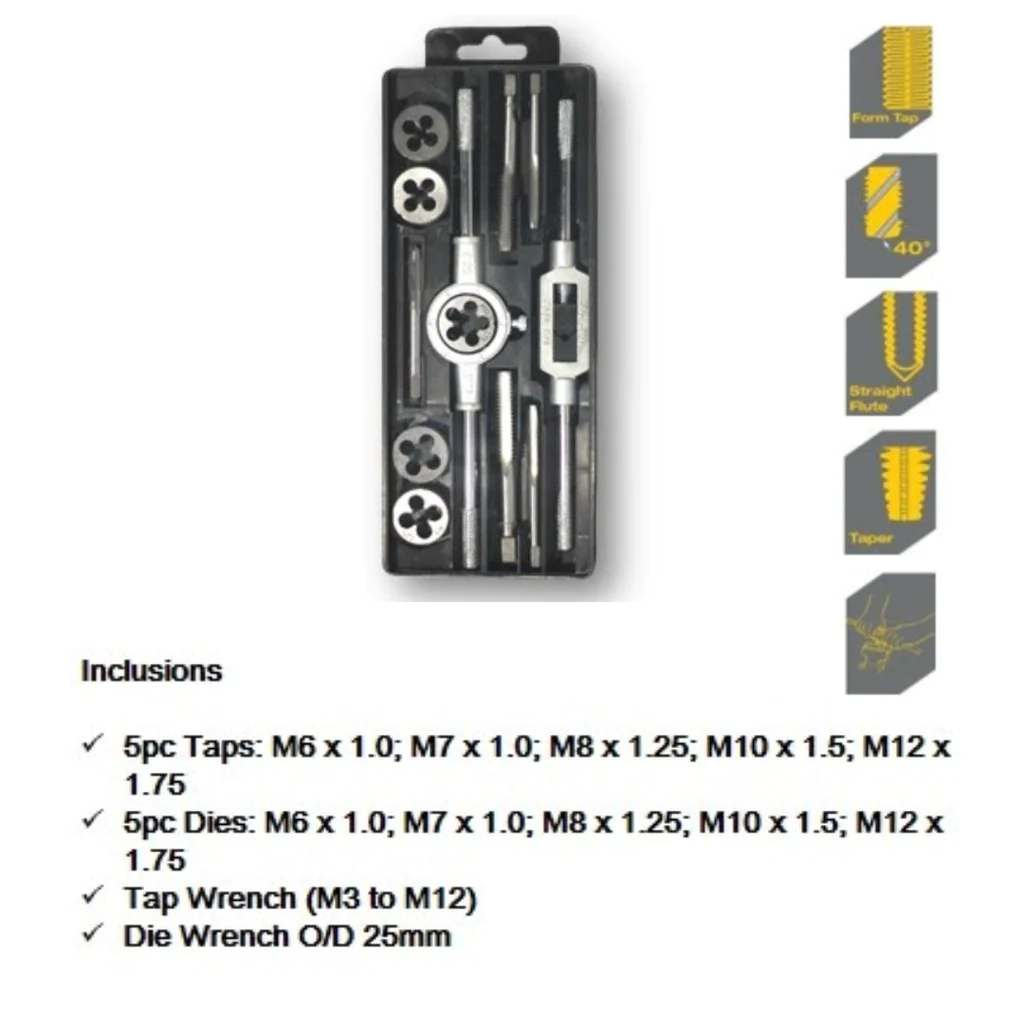 Tap & Die Set 12pc, LTHT12TDXTap & Die Set 12pcManufacturer: Lotus SKU: LTHT12TDXVendor: PremierScrewking ₱2,600.00 Qty: Add to cart Ship toSelect countryPhilippinesAustraliaCanadaChinaHong KongJapanMalaysiaSingaporeTaiwanUnited Arab EmiratesUnited KingdomUnited StatesUnited States of AmericaAfghanistanÅland IslandsAlbaniaAlgeriaAmerican SamoaAndorraAngolaAnguillaAntarcticaAntigua and BarbudaArgentinaArmeniaArubaAustraliaAustriaAzerbaijanBahamasBahrainBangladeshBarbadosBelarusBelgiumBelizeBeninBermudaBhutanBolivia (Plurinational State of)Bonaire, Sint Eustatius and SabaBosnia and HerzegovinaBotswanaBouvet IslandBrazilBritish Indian Ocean TerritoryBrunei DarussalamBulgariaBurkina FasoBurundiCabo VerdeCambodiaCameroonCanadaCayman IslandsCentral African RepublicChadChileChinaChristmas IslandCocos (Keeling) IslandsColombiaComorosCongoCongo (Democratic Republic of the)Cook IslandsCosta RicaCôte d'IvoireCroatiaCubaCuraçaoCyprusCzechiaDenmarkDjiboutiDominicaDominican RepublicEcuadorEgyptEl SalvadorEquatorial GuineaEritreaEstoniaEswatiniEthiopiaFalkland Islands (Malvinas)Faroe IslandsFijiFinlandFranceFrench GuianaFrench PolynesiaFrench Southern TerritoriesGabonGambiaGeorgiaGermanyGhanaGibraltarGreeceGreenlandGrenadaGuadeloupeGuamGuatemalaGuernseyGuineaGuinea-BissauGuyanaHaitiHeard Island and McDonald IslandsHoly SeeHondurasHong KongHungaryIcelandIndiaIndonesiaIran (Islamic Republic of)IraqIrelandIsle of ManIsraelItalyJamaicaJapanJerseyJordanKazakhstanKenyaKiribatiKorea (Democratic People's Republic of)Korea (Republic of)KuwaitKyrgyzstanLao People's Democratic RepublicLatviaLebanonLesothoLiberiaLibyaLiechtensteinLithuaniaLuxembourgMacaoMadagascarMalawiMalaysiaMaldivesMaliMaltaMarshall IslandsMartiniqueMauritaniaMauritiusMayotteMexicoMicronesia (Federated States of)Moldova (Republic of)MonacoMongoliaMontenegroMontserratMoroccoMozambiqueMyanmarNamibiaNauruNepalNetherlandsNew CaledoniaNew ZealandNicaraguaNigerNigeriaNiueNorfolk IslandNorth MacedoniaNorthern Mariana IslandsNorwayOmanPakistanPalauPalestine, State ofPanamaPapua New GuineaParaguayPeruPhilippinesPitcairnPolandPortugalPuerto RicoQatarRéunionRomaniaRussian FederationRwandaSaint BarthélemySaint Helena, Ascension and Tristan da CunhaSaint Kitts and NevisSaint LuciaSaint Martin (French part)Saint Pierre and MiquelonSaint Vincent and the GrenadinesSamoaSan MarinoSao Tome and PrincipeSaudi ArabiaSenegalSerbiaSeychellesSierra LeoneSingaporeSint Maarten (Dutch part)SlovakiaSloveniaSolomon IslandsSomaliaSouth AfricaSouth Georgia and the South Sandwich IslandsSouth SudanSpainSri LankaSudanSurinameSvalbard and Jan MayenSwedenSwitzerlandSyrian Arab RepublicTaiwan, Province of ChinaTajikistanTanzania, United Republic ofThailandTimor-LesteTogoTokelauTongaTrinidad and TobagoTunisiaTurkeyTurkmenistanTurks and Caicos IslandsTuvaluUgandaUkraineUnited Arab EmiratesUnited Kingdom of Great Britain and Northern IrelandUnited States Minor Outlying IslandsUruguayUzbekistanVanuatuVenezuela (Bolivarian Republic of)VietnamVirgin Islands (British)Virgin Islands (U.S.)Wallis and FutunaWestern SaharaYemenZambiaZimbabwe *Other *Shipping MethodNameEstimated DeliveryPriceNo shipping optionsApply Custom wishlist OKAdd to wishlistAdd to compare listEmail a friendFEAATURES:Perfect for creating threadsTap wrench can be adjustedto fit different tapsHigh quality steel for strengthand durabilityUsed for threading soft metalsTOOL SETBox/Ctn: 1/1Product tags tap & die set (1)Related products Lotus Screwdriver Set PRO (2PC),LTHTSS200Screwdriver Set₱240.00Add to cart Add to compare list Custom wishlist OKAdd to wishlist Screwdriver Set,LTHT25ESDscrew driver₱600.00Add to cart Add to compare list Custom wishlist OKAdd to wishlist Screwdriver Set,LTHT25ESDScrewdriver Set₱150.00Add to cart Add to compare list Custom wishlist OKAdd to wishlist